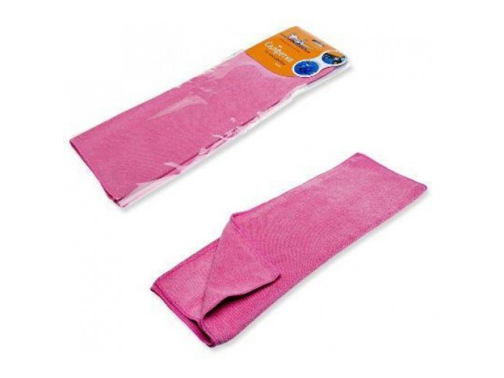 Салфетка из микрофибры розовая (40x60 см) в целлофановой упаковке с навершием - 1шт.