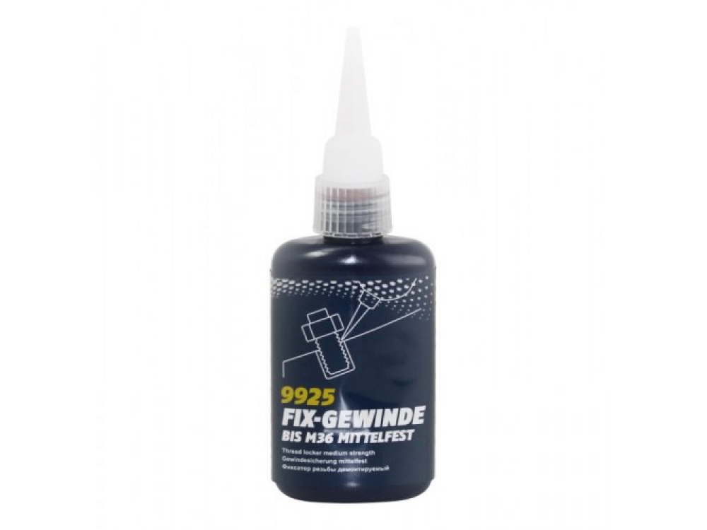 MANNOL Fix-Gewinde mittelfest предотвращает развинчивание металлических резьбовых соединений с шагом резьбы до M36. Выдерживает вибрацию, применим в моторах, трансмиссиях, коробках передач. Заполняет внутреннюю поверхность резьбы, предотвращает утечку масла, воды, воздуха и образование коррозии. Выдерживает крутящий момент при M10 до 20 Nm. Рабочая температура этого продукта от -55 °C до +150 °C.