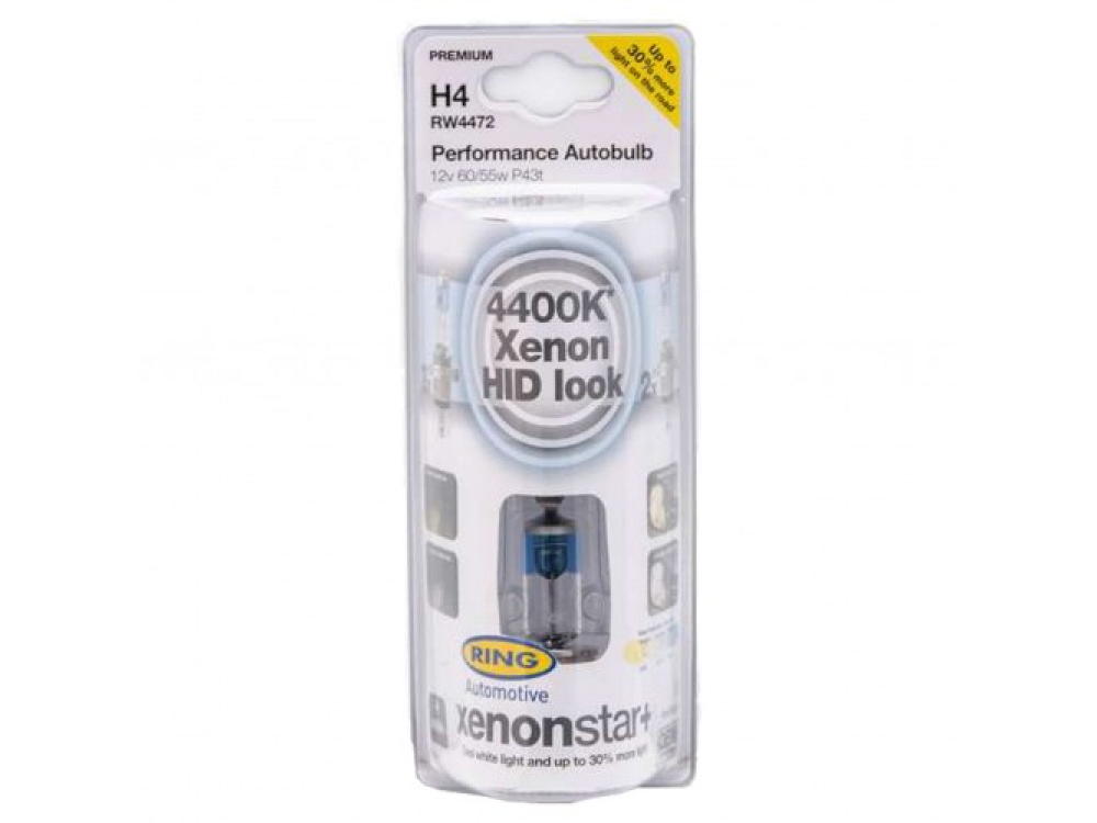 Автолампа XENON4400K +30% в пластиковой упаковке (по 2 шт): 12 вольт, мощность 60/55W, цоколь H4 (P43t)