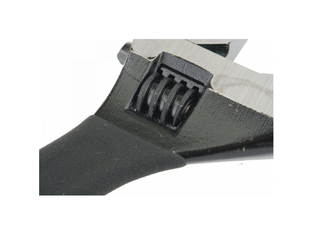 Ключ разводной изготовлен из углеродистой стали и подвергнут селективной закалке. Для разведения губок на точно заданное расстояние на неподвижной губке нанесена градуировка, а на подвижной – точечная риска. Встроенный в тело ключа червячно-винтовой механизм защищен от коррозии. Рожковый разводной ключ предназначен для монтажа и демонтажа резьбовых соединений с широким диапазоном размеров крепежа.