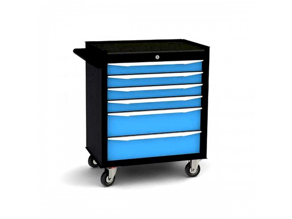 Тележка инструментальная 6 ящиков, синяя Характеристики: - Количество ящиков: 6 шт - Нагрузка на ящик: 20 кг - Вес: 50 кг - Объем: 0,264